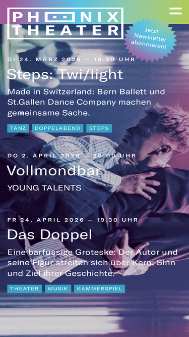 Online Veranstaltungskalender mit Hintergrundinformationen zur Schweizer Theaterszene.