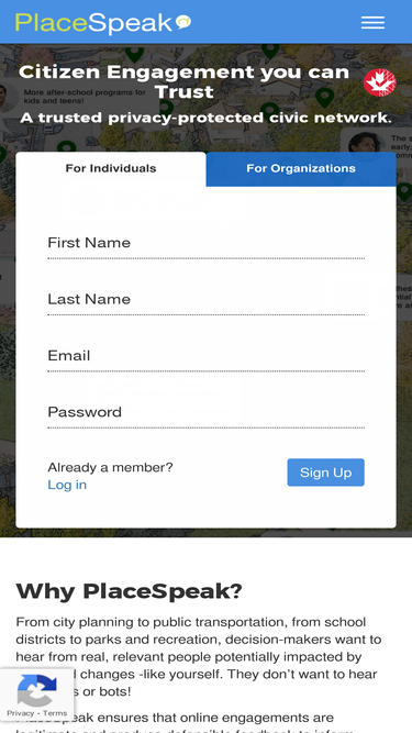 100%PlaceSpeak is a location-based community consultation platform. Claim your place. Speak your mind. Influence the outcome.