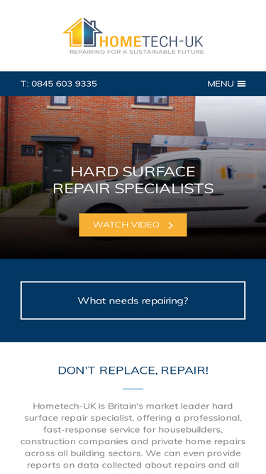 Hometech-UK is Britain's market leader hard surface repair specialist since 2001, offering a professional, fast-response service for house builders, construction companies and private home repairs across all building sectors. We are committed to promoting the recycling of goods through repair, rather than replacement, and ensuring that the processes we use have minimal impact on the environment. Our ethos is always to reduce the amount of waste being sent to landfill.
