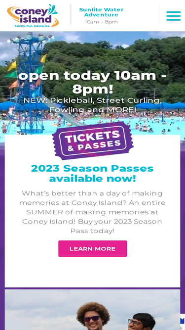 74%coney island, where moments become memories for a lifetime! play in sunlite pool, north america’s largest recirculating pool, with over an acre of shallow water for the little ones. dare to dive from a 9-foot board at cannonball cove or relax at the island oasis with all your favorite refreshments! from mid-november through early january, the park also hosts "coney island's nights of lights," a 2.5-mile drive-through holiday light show featuring more than 2 million lights and holiday displays perfectly synchronized to holiday music.
