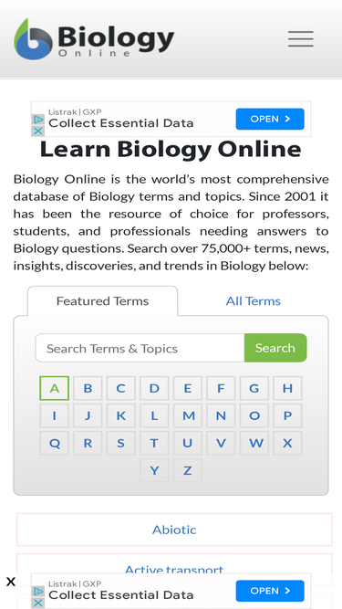 Biology Online is the world’s most comprehensive database of Biology terms and topics. Since 2001 it has been the resource of choice for professors, students, and professionals needing answers to Biology questions.
