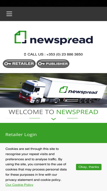 98%Newspread, Unit E, Greenogue Logistics Park, Rathcoole, Co. Dublin, D24 W56T; +353 (0) 23 886 3850; custservices@newspread.ie · Home · About Us · Contact Us
