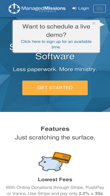 90%managedmissions is the #1 mission trip management software. easily accept online donations, simultaneously manage multiple trips, create mission trip applications, and manage expenses and budget. start for free today!