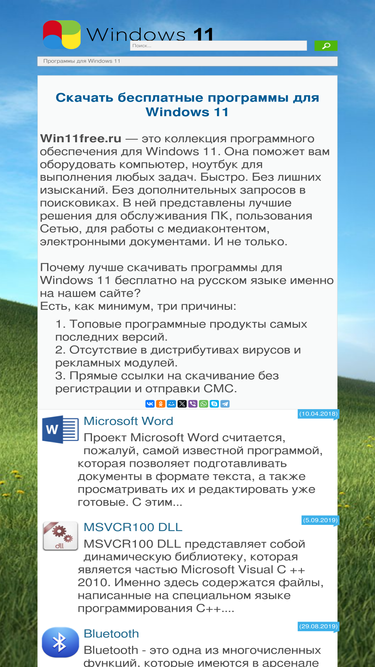 100%win11free.ru - это большой каталог рабочих программ на русском языке на компьютер windows 11, которые можно скачать бесплатно без регистрации и смс.