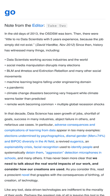91%I speak to audiences around the world about data, machine learning, artificial intelligence, and how to build real, functional, and robust products. I’m optimistic (because this stuff is really coo…