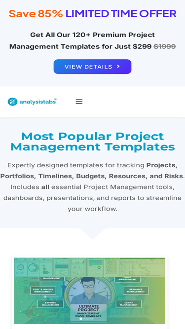 95%Premium Excel, PPT & Word templates for project management, personal finance & life planning, plus VBA tools. Instant downloads from Analysistabs® Pro.