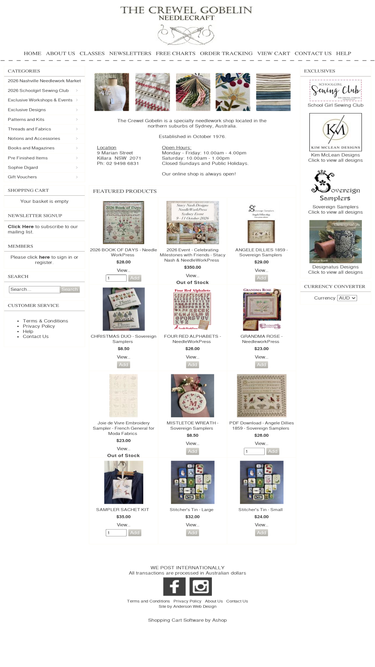 australian needlework store specialising in tapestry, heirloom sewing,embroidery,crossstitch and specialty threads