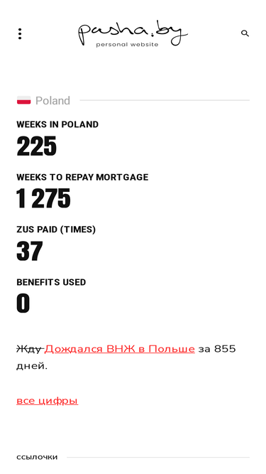 51%Жду Дождался ВНЖ в Польше за 855 дней. Hello, my name is Pasha. Мне за 40. Я родился в Венгрии, вырос в Беларуси, живу в Польше. Пишу плохие тексты, делаю хороший дизайн, записываю смешные рилсы, увлекаюсь старыми автомобилями и декором. Я использовал длинные тире задолго до