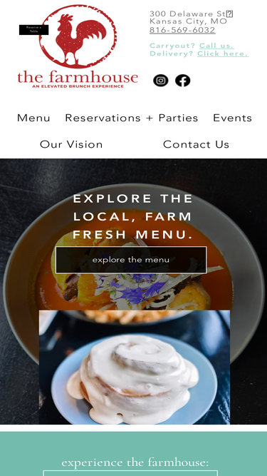 100%Kansas City's elevated brunch experience offeres a menu of chef-driven, seasonal, and local menu items. Fresh from the farm and onto your plate, come on in to experience The Farmhouse.