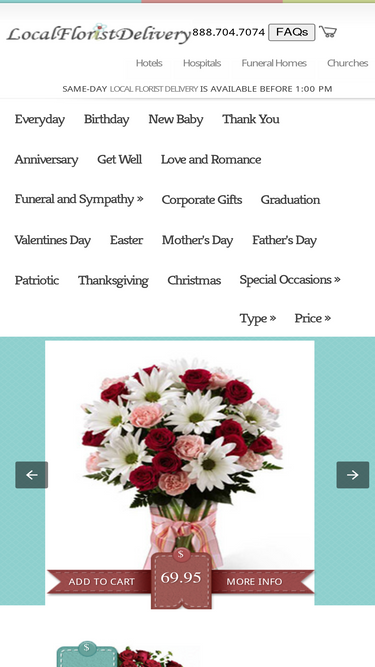local florist delivery provides same day delivery of flowers to hotels, hospitals, and funeral homes by a network of local florists. same day delivery also available for birthdays, anniversaries, valentine’s day, mother’s day, christmas, and other special occasions.