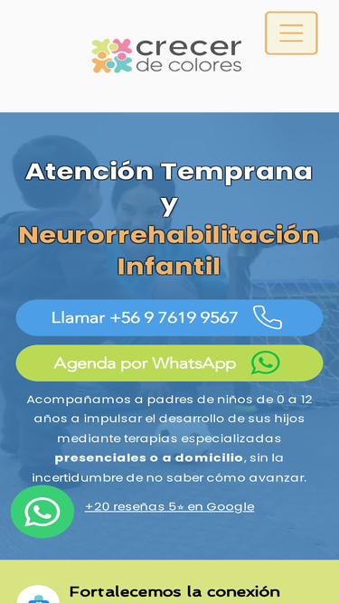 100%El desarrollo de tu hijo es nuestra prioridad en Crecer de Colores. Nos especializamos en atención temprana, ofreciendo intervención integral para niños y niñas con trastornos en el desarrollo. Nuestro equipo interdisciplinario trabaja para potenciar sus habilidades desde las primeras etapas de vida.