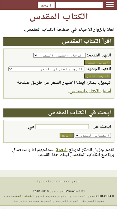 100%موقع الكتاب المقدس, انجيل دوت كوم, يقدم الكتاب المقدس بالعهد الجديد والعهد القديم, قراءة, بحث سريع, وادوات اخرى من اجل تسهيل كلمة الرب للانسان, وايصال محبة الرب يسوع المسيح لكل العالم, وبانه ترك لهم كلمة الله ليعرفوا كل الامور عن الحياة في ضوء الحياة مع السيد المسيح