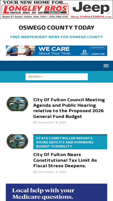 100%1999 Fulton Daily News opens as one of the nation’s first hyper-local online news publications. Now Oswego County Today is Oswego County’s best-read daily news publication.