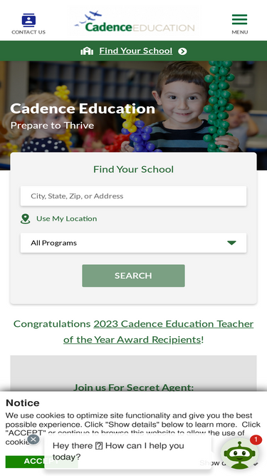 88%Our Private Elementary Schools provide educational experiences not available at public schools. Find a Cadence Education program near you.