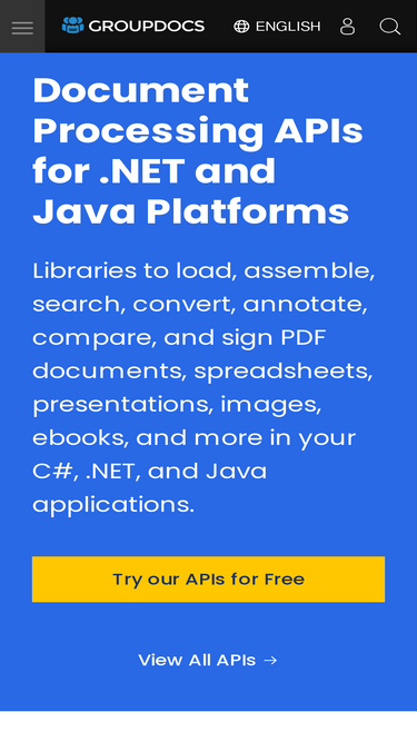 100%File Format SDKs for .NET, Java, PHP, JavaScript, SharePoint, Android, Reporting Services and JasperReports for web, desktop, and mobile platforms.