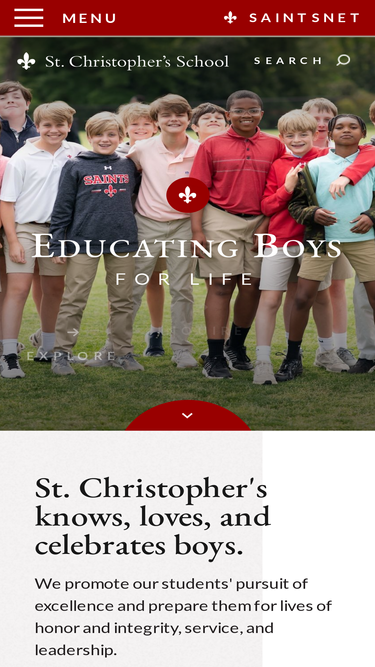 59%located in richmond, virginia, st. christopher’s school is an independent episcopal day school for boys in jk-12. educating boys for life.