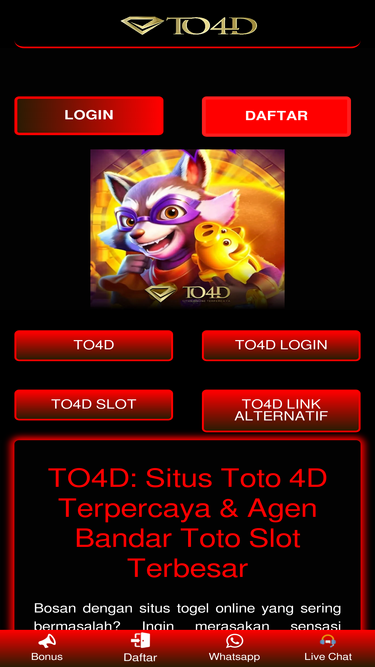 50%TO4D adalah situs toto 4D terpercaya dan agen bandar toto slot terbesar di Indonesia dengan fitur dan layanan lengkap, pasaran resmi terbesar, deposit mudah, withdraw cepat, dan menang berapapun pasti dibayar. Daftar TO4D sekarang!
