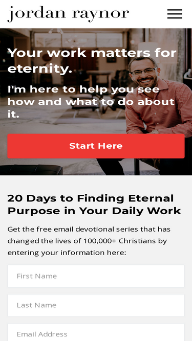 87%Jordan Raynor is a leading voice of the faith and work movement. He has spoken at the RightNow Media Conference, SXSW, Harvard, the Faith Driven Entrepreneur Conference, and many other events all around the world.