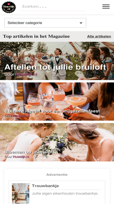 79%Jullie gaan trouwen. Wanneer in ondertrouw? Hoeveel getuigen? Welke trouwlocatie? Wanneer trouwjurk kopen? Huwelijk.nl beantwoordt jullie vragen, geeft tips, volgt trends en biedt een overzicht van specialisten uit jouw buurt.