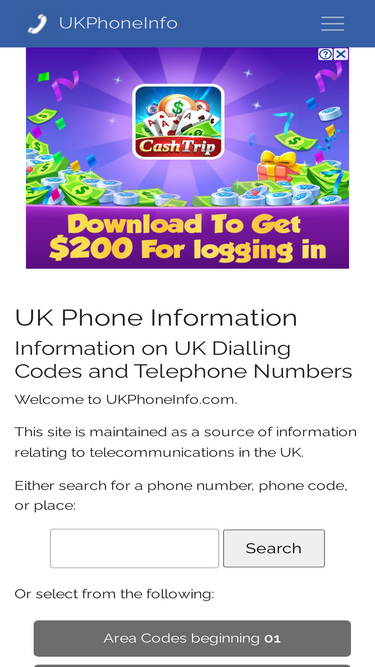 84%a comprehensive source of information on uk telephone codes. the search facility takes phone codes (area codes) or full uk telephone numbers and checks their validity, giving details on the area code where appropriate.