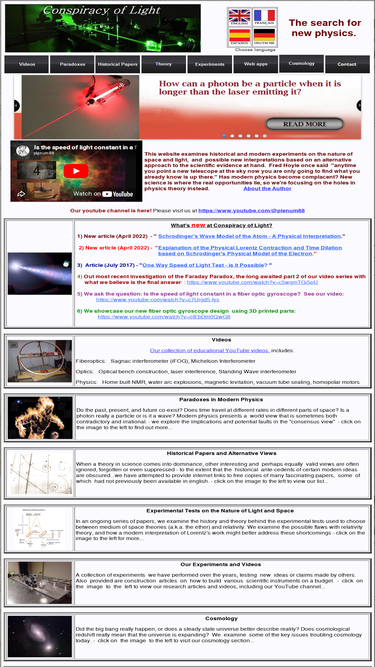 82%this website examines historical and modern experiments on the nature of space and light, and possible new interpretations based on an alternative approach to the scientific evidence at hand.