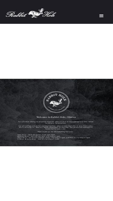 Welcome to the Rabbit Hole, Ottawa's newest restaurant, bar and lounge. Join us for artisanal cocktails, wood-fire pizzas and an unbeatable Sparks Street vibe.