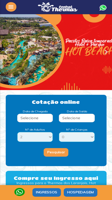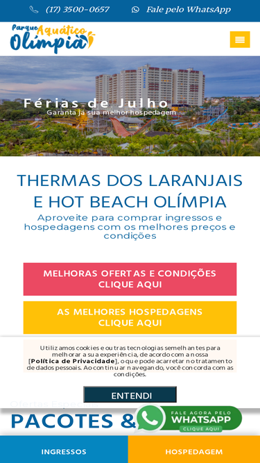 93%Sua viagem ganha mais diversão aqui! Pacotes para Olímpia, Caldas Novas, Barretos, Rio Quente e outros destinos incríveis, com hospedagem + ingressos e parcelamento em até 10x. Atendimento que cuida de cada detalhe para você só pensar em aproveitar.