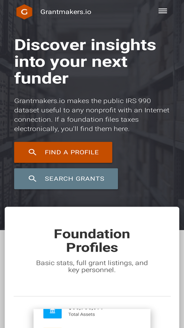 64%quickly find data on 109,000 grantmaking institutions in the us. a free, open source project.