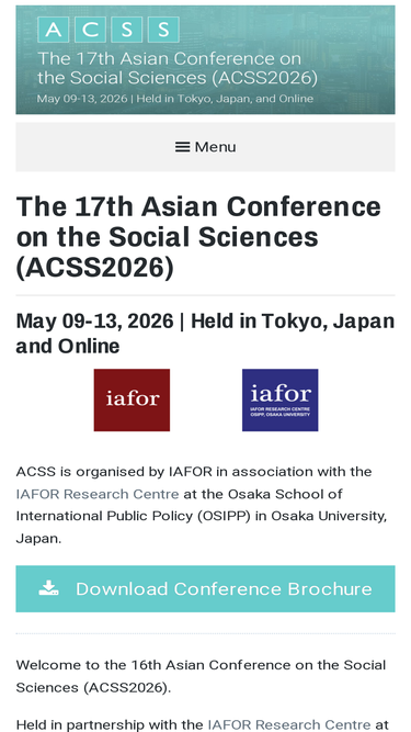100%welcome to the 14th asian conference on the social sciences (acss2023) – proudly organised by iafor in association with the iafor research centre at the osaka school of international public policy (osipp) in osaka university, japan.