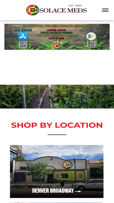 solace meds is a cannabis dispensary serving colorado and oklahoma. we offer online ordering and have the largest selection of cannabis strains, edibles, concentrates, vaporizers, topicals, pills, drinks, and tinctures.