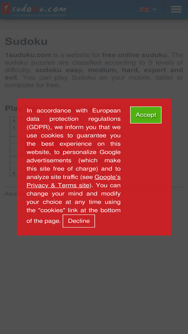 Play Sudoku online for free with Easy, Medium, Hard and Very Hard levels. Track your time, use hints and notes, print puzzles with answers, and try our Daily Sudoku.