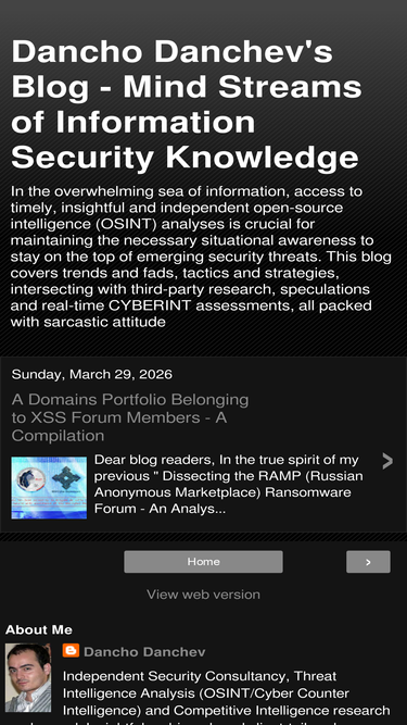 Dancho Danchev's Blog - Insightful and independent open-source intelligence (OSINT) analyses cybercrime research and threat intelligence gathering
