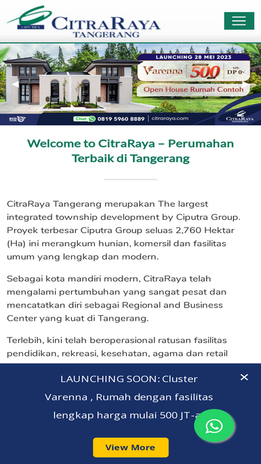 100%citraraya perumahan di tangerang, kota terpadu 2.760 ha dari ciputra group. kawasan terintegrasi komersil, fasilitas, beli rumah di tangerang.