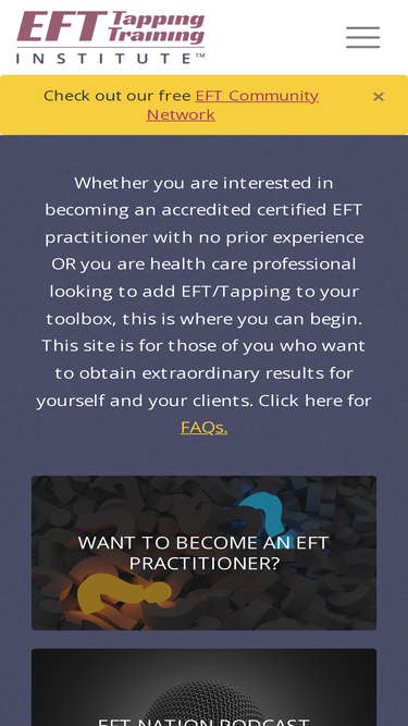 96%See also: Policies & Procedures Who we are EFT International™ (formerly AAMET International, The Association for the Advancement of Meridian Energy Techniques) is a UK-registered Charitable Incorporated Organisation (CIO), registered charity number 1176538. Our website address is: https://eftinternational.org. See the About Us Page Comments When visitors leave comments on the site we collect the data […]