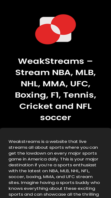 100%WeakStreams is a popular sports live website in the US. We stream NBA, MLB, MMA, UFC, Boxing, and NFL 24/7 every day of the week of major tournaments.