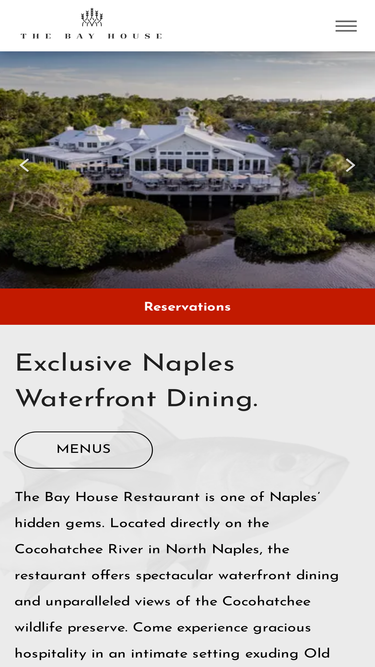 the bay house restaurant is one of naples’ hidden gems. located directly on the cocohatchee river in north naples, the restaurant offers spectacular waterfront dining and unparalleled views of the cocohatchee wildlife preserve.