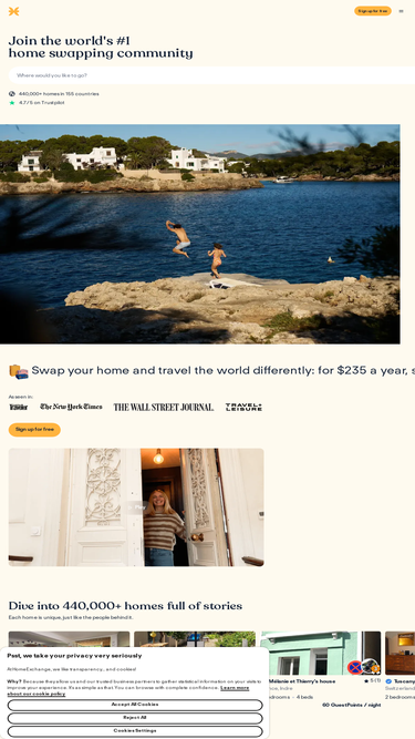 81%join love home swap, the world’s biggest home exchange club. stay in 51,000+ beautiful homes worldwide for free. our members save up to 90% on travel costs.