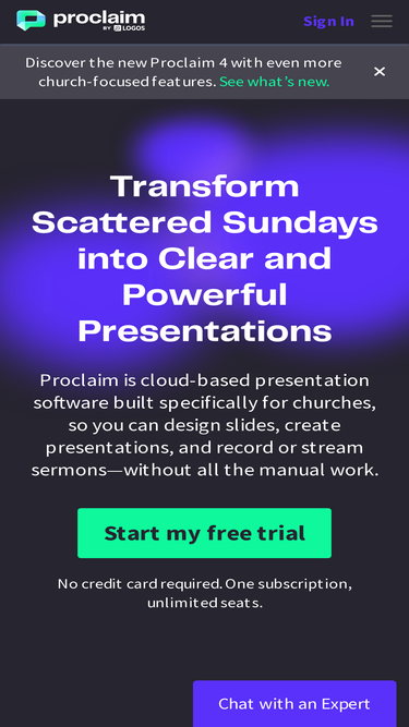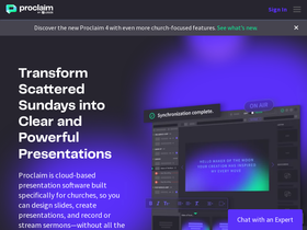 76%Proclaim is a cloud-based presentation software built specifically for churches, so you can design slides, create presentations, and record or stream sermons—without all the manual work.