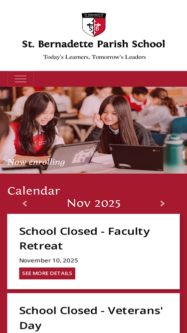 75%At St. Bernadette Parish School, we nurture a love of learning while encouraging students to grow, create, and work together. From our youngest learners in Preschool at age 2½ through our leaders in 8th grade, every child is valued and supported. We invite you to visit us in Burien and experience the joy, spirit, and strong sense of community that make families love being part of St. Bernadette.