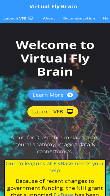 Welcome to Virtual Fly Brain (VFB) - an interactive tool for neurobiologists to explore the detailed neuroanatomy, neuron connectivity and gene expression of Drosophila melanogaster. Our goal is to make it easier for researchers to find relevant anatomical information and reagents. We integrate the neuroanatomical and expression data from the published literature, as well as image datasets onto the same brain template, making it possible to run cross searches, find similar neurons and compare image data on our 3D Viewer.
