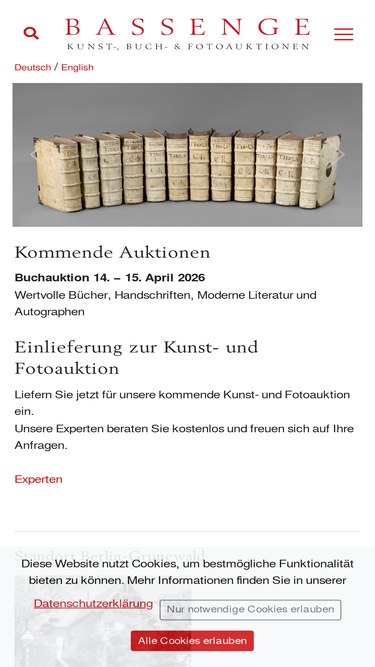 88%die „galerie gerda bassenge kunst- und buchauktionen“ ist ein individuell geprägtes haus, dessen unverwechselbares profil in aller welt geschätzt wird. einlieferungen sind jederzeit willkommen.