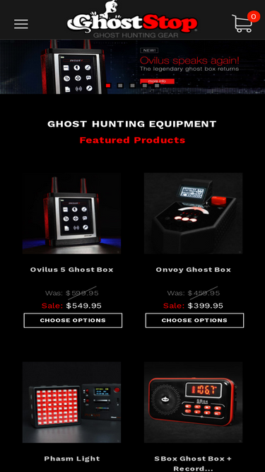 80%ghost hunting equipment and gear for paranormal investigators. emf meter, full spectrum cams, evp recorder, trifield meter, laser grid, infrared / nightvision ir lights, ghost hunter equipment and more.