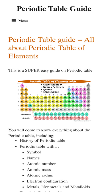 75%The Ultimate Periodic Table Resource. Your go-to source for everything periodic table of Elements: Interactive Table, labeled charts, guides, articles, and more.