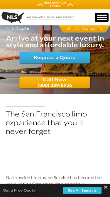 100%San Francisco\'s Nationwide Limousine Service serves the greater Bay Area with the finest selection of limos, party vans, limo buses, sedans, airport shuttles, and more at the best rates for all your luxury ground transportation needs. Call us today at 800-339-8936!