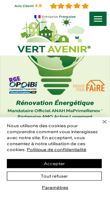 96%Découvrez les avis sur VERT AVENIR, Mon Accompagnateur Rénov expert, reconnu pour la qualité de son audit énergétique et son accompagnement rénovation.