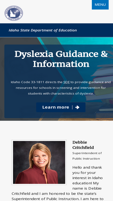 79%Meet Idaho Department of Education Superintendent of Public Instruction Debbie Critchfield and learn about her experience and vision.