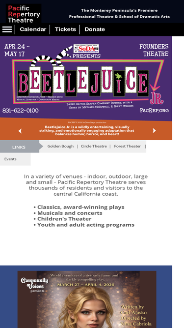 84%pacrep theatre produces quality interpretations of great plays that engage, excite, educate and inspire - presenting a world-class theatrical experience.