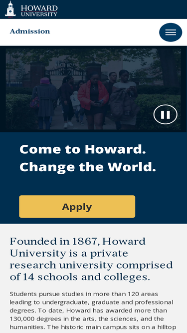 74%the office of admissions at howard provides updated information for undergraduate, graduate, and professional program admissions.