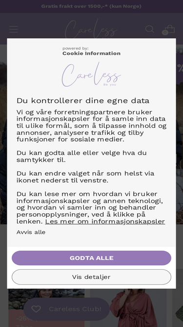 87%Careless står for at det er rom for å være ulike. Uansett størrelse, form, høyde og bredde – kroppen skal hylles i klær man føler seg vel i. Careless er utviklet slik at det skal passe til flest mulig kroppstyper. Gjennom stretch, justerbare funksjoner og behagelige stofftyper skal du føle deg BRA NOK.