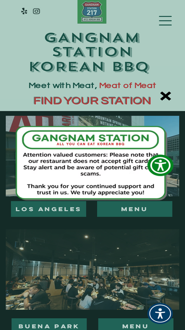 Gangnamstation BBQ restaurant is located in the heart of Buena Park. We Provide High Quality All you can eat Korean BBQ, We only uses meat of USDA Choice